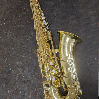 Saxophone d'étude qui a fait ses preuves au fil des années. Quelques traces d'usure du vernis sur le pavillon et les gardes.Vendu avec son étui et un bec Yamaha 4C